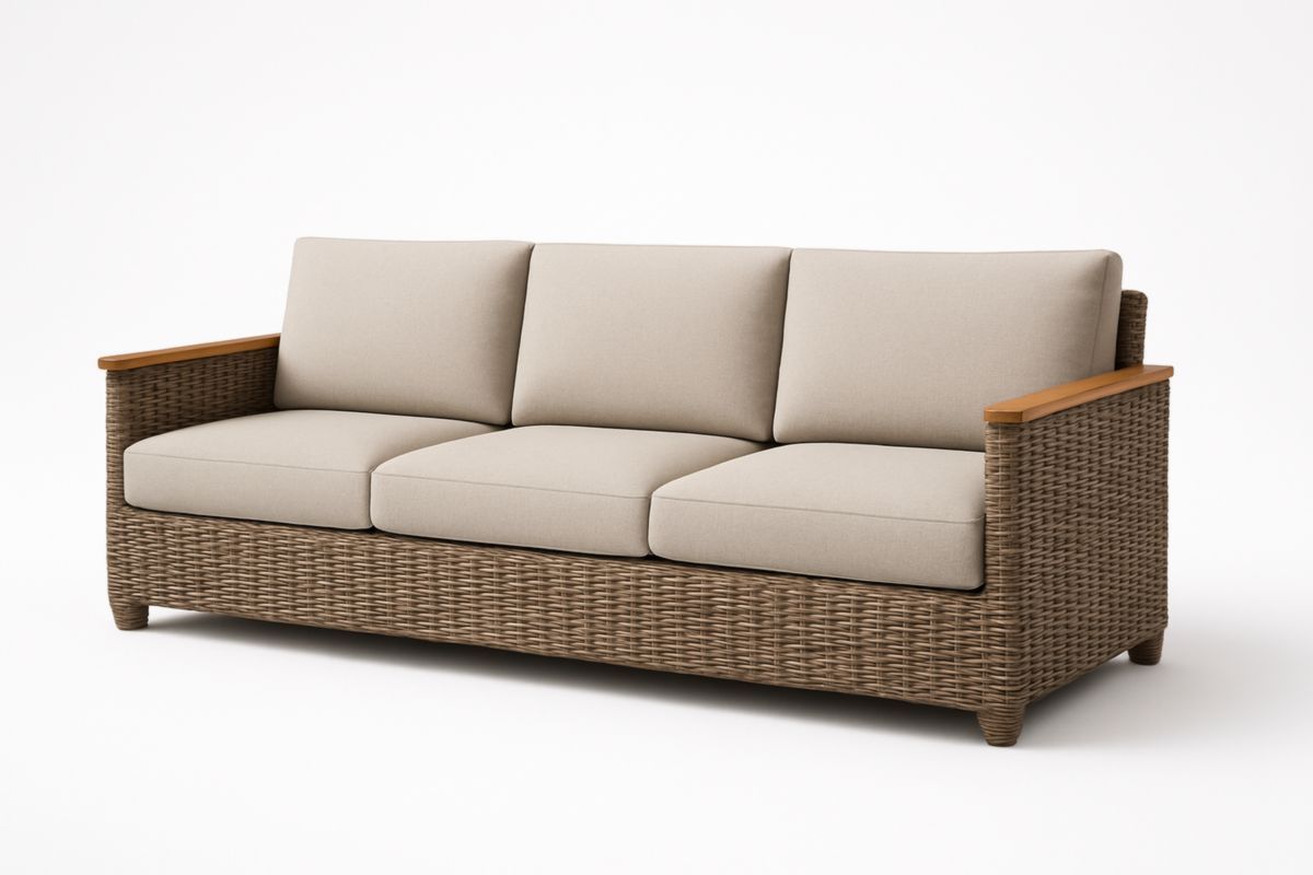 Divano a tre posti in rattan e poliestere Beige