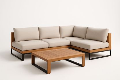 Divano Angolare in Legno e Metallo con Tavolino Beige