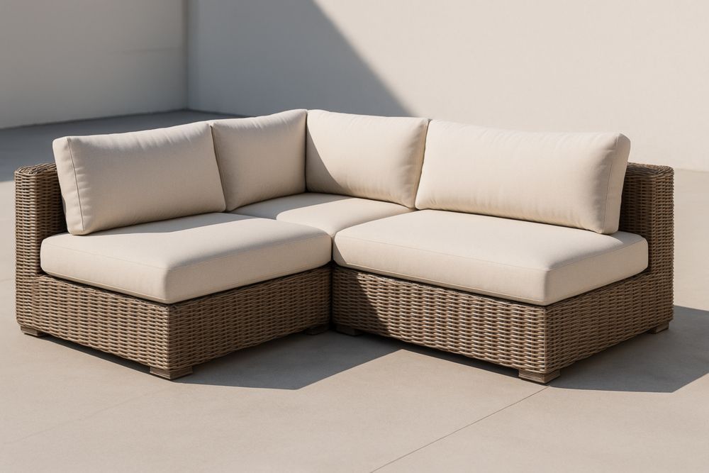 Divano Angolare in Rattan Sintetico con Cuscini in Poliestere Beige